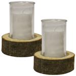 Preview: 2er-Set Echtholz-Windlicht mit Kerzenglas - Natur-Look Deko für Innen & Aussen - Ø8x11cm/Ø12x4cm - Warme Atmosphäre - Holzsockel mit Naturrinde