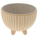 Preview: Blumentopf aus Keramik - 3D-Muster gestreift beige/weiss - 3 Standfüsse - Übertopf 14x10cm - Dekoration für Pflanzen & Aufbewahrung