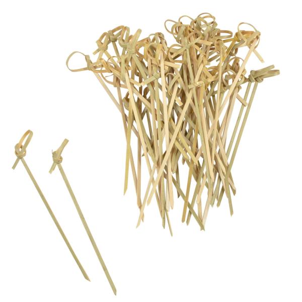 Eine besondere Note: Die Bambusspiesse warten mit einer ganz speziellen Note auf: die geknoteten Enden verleihen Ihren Lebensmittelspiesschen und Ihrer Cocktail-Verzierung das gewisse Extra.