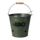 Grilleimer aus Metall - tragbarer Campinggrill mit Henkel und Rost - doppelwandig, Belüftungslöcher, grün, Ø 26,5x25cm - für Garten, Picknick