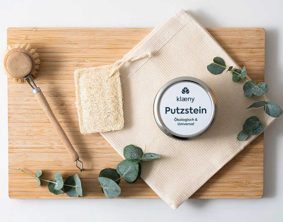 Ein Must-Have unter den nachhaltigen Reinigern ist der universal Putzstein. Er ist der umweltfreundliche Allrounder der Reinigungsroutinen, sowohl im Haus als auch im Garten. Besonders wirkungsvoll ist er gegen alltäglichen oder hartnäckigen Schmutz wie Wasser- & Kalkflecken, Seifenreste, Fingerabdrücke, Make-up, Fettflecken, Zahnpasta, Nikotin, Schlieren von Insekten, Kaffee und Teeflecken, Vergilbungen oder Flug-Rost. Der Putzstein ist besonders ergiebig, mehr als 100 Anwendungen sind in den unterschiedlichsten Bereichen im Haus und Garten möglich. Sowohl in der Küche für Spülbecken, Herdplatten (Ceran- & Induktionsherde), für sämtliche Ablagen, Backöfen, Kühlschränke oder aber auch Dunstabzugshauben. Auch im Badezimmer oder im Garten, für Duschkabinen, Fliesen, Spiegel, den Grill und Gartenmöbel findet er Verwendung (ungeeignet für lackierte oder empfindliche Oberflächen). Sogar Ihre Sneakers können hiermit gesäubert werden.