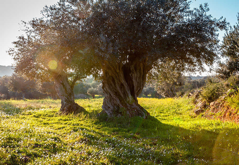 Der Olivenbaum (Olea europaea) ist ein sehr unregelmässig verwachsener Baum und zählt zu einer der ältesten Nutzpflanzen. Der legendäre Olivenbaum und das aus seinen Früchten gewonnene Öl begleiten die Menschheitsgeschichte bereits seit Jahrtausenden. Man geht davon aus, dass der Olivenbaum schon etwa vor 8000 Jahren kultiviert wurde, sehr wahrscheinlich in Syrien oder auf Kreta. Er ist besonders im Mittelmeerraum stark verbreitet, aber auch im Nahen Osten und Südafrika. Die Bäume wachsen stark verzweigt und langsam, sie können bis zu 1000 Jahre alt werden. Ein Olivenbaum stellt wenig Anspruch an den Boden und kann eine Höhe von bis zu 20 Metern erreichen. Abhängig von der Baumsorte werden nach etwa 7-15 Jahren erstmals Oliven geerntet. Um die Ernte stets ertragreich zu halten, werden auch Bewässerungsanlagen für Dürreperioden eingesetzt. Olivenbäume gelten als Symbol für Frieden, Liebe und Treue. Sie verkörpern die Langlebigkeit.