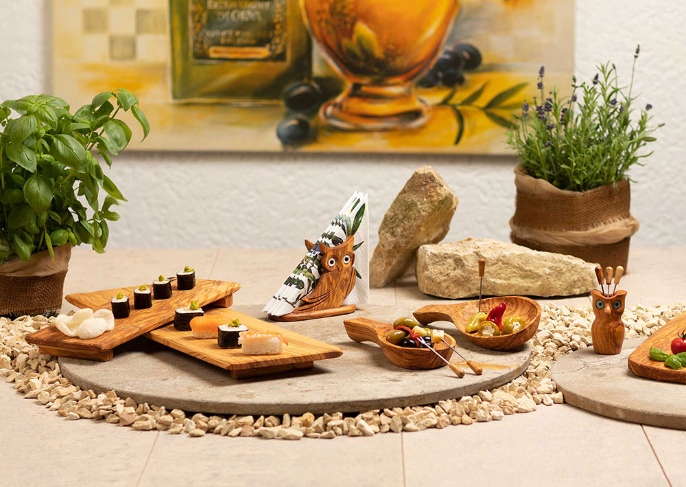 Produkte aus Olivenholz strahlen aufgrund ihres natürlichen Aussehens Wärme & Geborgenheit aus, sie stehen für gemütliches Wohnen und ein angenehmes Raumklima. Ob eine stilvolle Salatschüssel auf dem Tisch, das rustikale Schneidebrett in der Küche oder eine Schale mit leckeren Snacks beim gemütlichen Filmeabend, die einzigartige Maserung des Olivenholzes verleiht jedem Utensil seinen individuellen Charme. Nicht nur optisch sind Olivenholzprodukte ein echter Hingucker, sie zeichnen sich darüber hinaus auch durch ihre angenehme Haptik aus. Die seidig-glatte Oberfläche des Olivenholzes liegt besonders sanft in der Hand und ist sozusagen ein echter Handschmeichler! Egal ob ein Servierbrett aus Olivenholz, eine Trüffelreibe, das Sushi-Brett oder edle Olivenholzschalen, Produkte aus Olivenholz setzen neben ihrem praktischen Nutzen dekorative Akzente, verbreiten ein mediterranes Flair und sind absolut zeitlos.