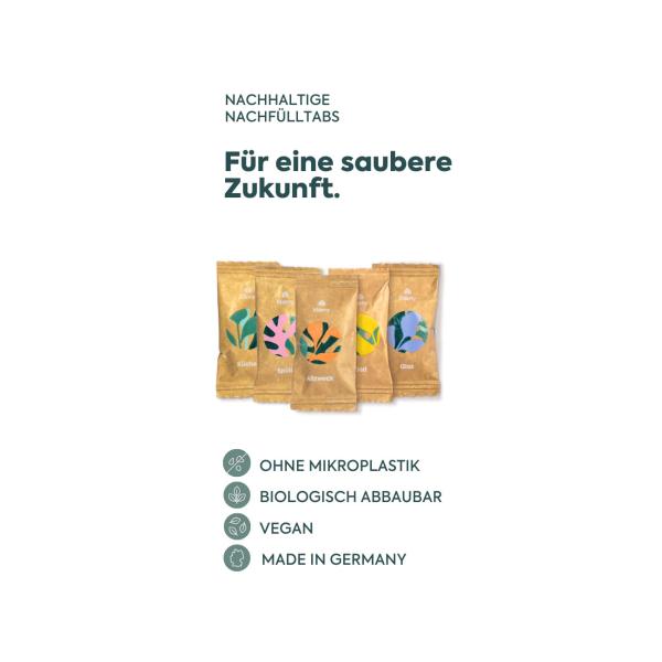 Efficace, végane et agréablement parfumée. Grâce à cette pastille, nettoyer ne sera plus une corvée déprimante! Elle est, en effet, complètement naturelle, végane et respectueuse de l’environnement. Qui plus est, elle est entièrement fabriquée en Allemagne et élimine efficacement la saleté. Pour parfaire encore plus l’expérience, la pastille laisse un agréable parfum de vanille derrière elle.