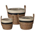 Cestini di paglia naturale in set da 3, nero/naturale - Cestini intrecciati - Soluzione di stoccaggio robusta ed elegante